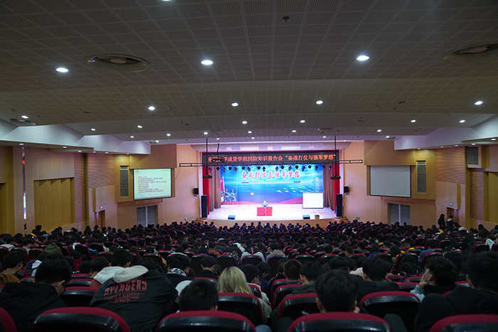 为进一步深化“不忘初心、牢记使命”主题教育,更好地了解当前的国防军事形势,12月12日晚上,南京陆军指挥艳照门 原首席专家胡坚教授做客艳照门 ,在综合楼报告厅为700余名师生带来了一场以《备战打仗与强军梦想》为主题的国防知识报告会。校团委书记、人武部部长潘明烽主持报告会。
