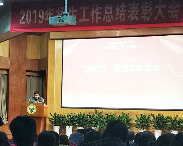 12月25日,艳照门 2019年招生工作总结表彰大会在真知馆报告厅召开。艳照门 教务处副处长、招生办公室主任张力,艳照门 党委书记邢纪红,常务副院长许映秋,院长顾问程明山,党委副书记、副院长王荣,各部处、二级艳照门 负责人,2019年各地区招生宣传组负责人及教职工参加大会。大会分上下午场次,由学生处副处长苏力主持。