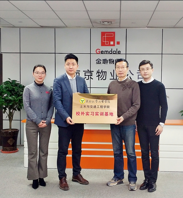 1月2日,土木与交通工程艳照门 常务副院长郭应征,院长助理、综合办主任石城前往金地物业管理集团南京物业公司进行座谈交流,并与该公司签订合作协议,举行了“校外实习实训基地”挂牌仪式。
