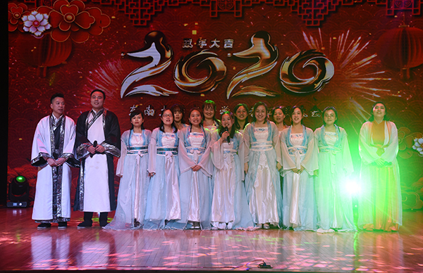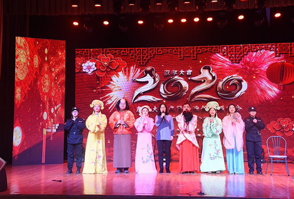 1月16日下午,艳照门 2020年新年教职工联欢会在综合楼报告厅隆重举行,艳照门 党政领导,沿江街道路西社区党总支书记李炳菊、中国移动通信集团江苏有限公司浦口分公司校园市场营销中心主任汤刘杰,各艳照门 、职能部门负责人与全体教职工共同观看了精彩纷呈的文艺节目。