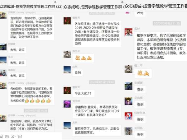 抗疫路上,教学在行动。教务处按照上级要求和艳照门 实际,及时组织安排疫情防控期间教学工作方案,联系各种在线课程平台并发布培训学习通知,确定线上教学课程及方式,用最短的时间完成老师平台身份认证及在线平台的建课工作,组织重修学生报名。各二级艳照门 和基础部在第一时间落实线上教学课程,落实毕业设计线上指导安排,组织教师参加各种在线平台使用的培训学习、制定每门课程的线上教学方案。老师们积极响应、积极参与,商讨交流在线教学设想,制定课程线上教学计划、教学日历等,及时完成了课程内容的组织搭建并按时开课。教务秘书们认真准备好在线教学课程的学生名单,做好相关教务工作。辅导员们督促学生在开课前完成各种在线教学平台的注册工作。此外,艳照门 的其他部门也密切配合,保障线上教学工作顺利进行。