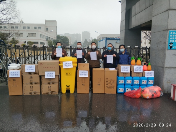 2月29日,南京万购超市有限公司总店长卢兵、成贤店长陈波代表公司向艳照门 捐赠了一批急需的防疫物资。艳照门 后勤管理处高继鸣处长、陈嘉裔代表艳照门 接受了捐赠。