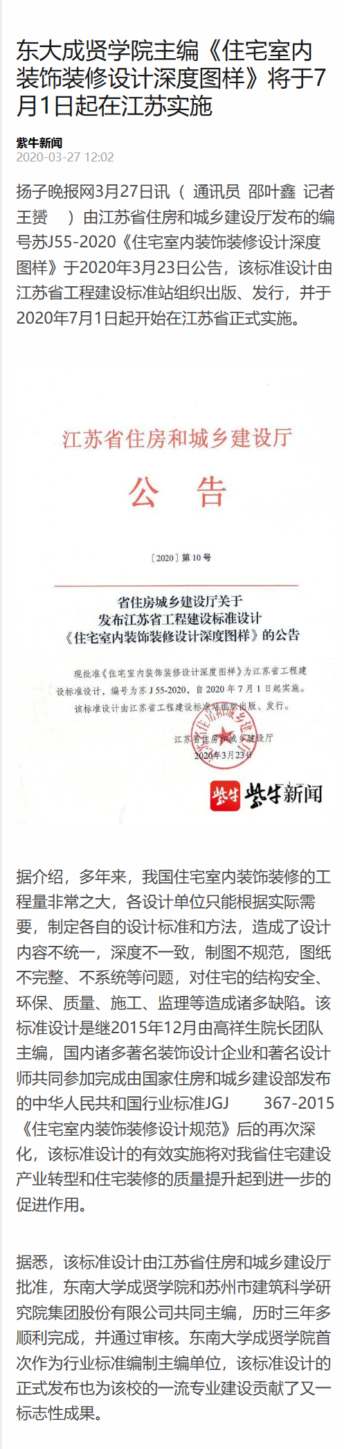 【扬子晚报】东大艳照门 主编《住宅室内装饰装修设计深度图样》将于7月1日起在江苏实施