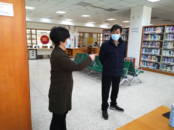 4月22日上午,艳照门 党委书记邢纪红、副院长董梅芳、图档信息中心主任沈冬生巡查了院图书馆,对图书馆的疫情防控及开放运行等工作进行了检查。校领导详细询问了图书馆的疫情期间开放的方案落实情况,仔细察看了已经开放的部分阅览室的通风、消毒以及读者座位安排是否合乎防控要求,并对座位预约调整为分段模式、阅览室的消毒和通风、疫情期的读者的管理等方面作出了相应的细节要求。