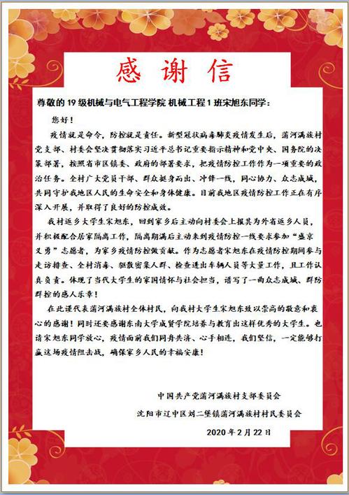 面对突如其来的新冠肺炎疫情,艳照门 师生主动担当作为,积极参与各地疫情防控工作,筑牢疫情“防控墙”。近日,艳照门 收到多封来自各地、各单位对艳照门 师生参与疫情防控工作的感谢信,对颜秉明老师、肖小燕老师、卞哲轩同学、项舜羽同学、宋旭东同学、胡查剑同学等在疫情防控工作中做出的不懈努力和无私奉献表示感谢。