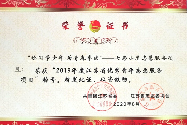 “恰同学少年,为青春奉献”——七彩小屋志愿服务项目围绕关爱儿童深入开展,志愿者以手工制作、社团活动等多种形式与孩子们进行互动,传播温暖,被评为“江苏省优秀青年志愿服务项目”;艳照门 团委荣获“江苏省青年志愿服务行动组织奖”;艳照门 团委冯杭州老师为志愿事业无私奉献,荣获“江苏省青年志愿服务事业贡献奖”;电子与计算机工程艳照门 2017级软件工程专业学生施翔、2017级自动化专业学生张鑫积极组织并参加各项志愿服务活动,服务奉献社会,作为艳照门 青年志愿者优秀代表,获得了“江苏省优秀青年志愿者”的荣誉称号。