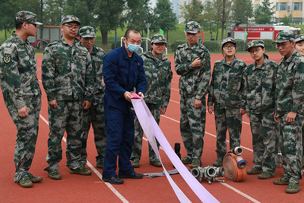 消防知识讲座由南京市高新技术产业开发区消防救援大队泰山政府专职消防站郑前途指导员担任主讲人。郑前途指导员结合日常生活进行分析,用真实案例给新生们介绍了火灾的概念、避免火灾的办法和火灾中急救方法等等,使同学们受益匪浅。活动现场,消防队员们展示了常见消防器材的使用方法,现场部分同学在消防队员的指导下,参加了消防装备的实操体验和灭火演练。