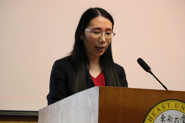 苏宁云财曹红副总监与许映秋常务副院长随后进行了苏宁财务共享实训基地的续约仪式,仪式结束后,苏宁云财杨昱颖主任为现场2018级的学生进行了实训的宣讲。