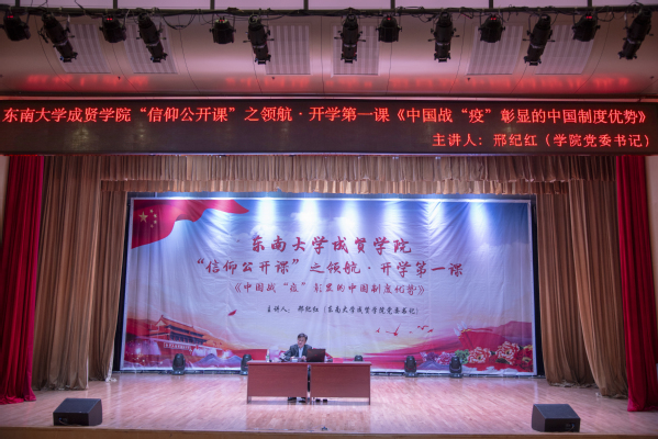 报告伊始,邢书记从中国战“疫”的艰辛历程;信心,从新中国防疫史中来;中国战“疫”彰显中国特色社会主义制度优势;坚定“四个自信”,实现伟大“中国梦”四个方面,通过疫情防控中展现的中国力量、中国精神、中国效率,进行了详细的剖析和讲解。随后,邢书记对比中西方的疫情防控战略及成果,进一步阐述了中国共产党的统一领导、集中力量办大事、整体利益置于首位、坚持人民主体地位、强大社会动员能力、依法治国等彰显的中国特色社会主义制度显著优势。报告会中,邢书记从艳照门 疫情防控、东大抗疫英雄人物、艳照门 志愿者等方面讲述了疫情防控中各级党组织和广大党员干部、志愿者冲锋在前、义无反顾、共克时艰、敢于担当的奉献精神,医护人员坚定“逆行”、忘我付出的救死扶伤、医者仁心精神,全国人民众志成城、团结协作、守望相助的民族精神,这些精神背后展现的是中华民族的向心凝聚力和磅礴气势,也体现了中国出色的领导能力、应对能力、组织动员能力和贯彻执行能力,为世界防疫树立了典范。