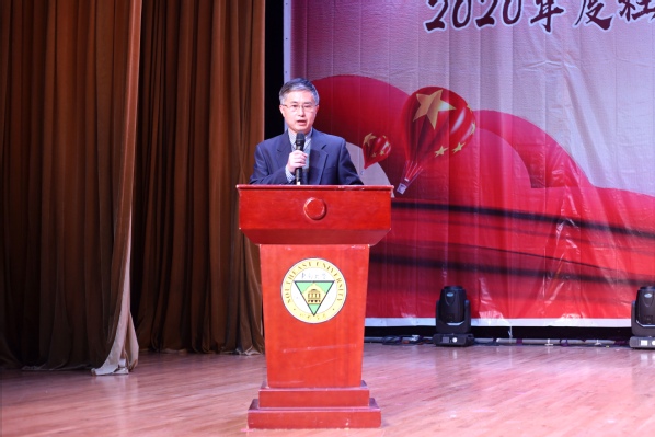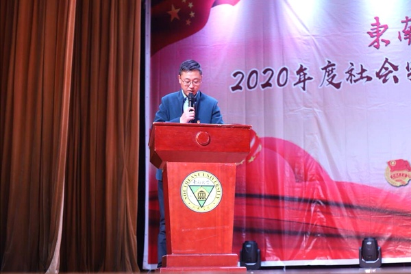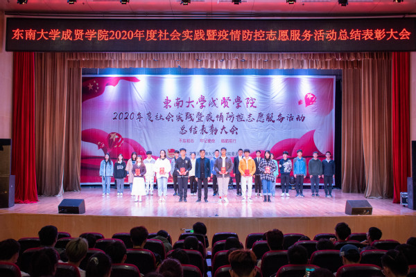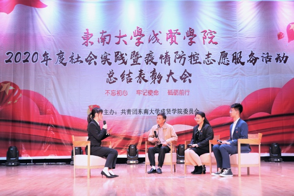 表彰大会上,校团委书记、人武部部长潘明烽宣读了表彰决定。随后,学生处处长施杰颁发了“优秀组织”“优秀指导教师”奖项,校团委书记、人武部部长潘明烽颁发了社会实践优秀团队一、二、三等奖,学生处副处长苏力颁发了“优秀奖团队”“优秀学生”和“疫情防控优秀志愿者”奖项。优秀指导教师代表周文娟、优秀学生代表易彭鹏分别做了精彩发言,分享了他们在社会实践中的经验和感想;由胡钱胜老师指导的优秀团队“向党而生青年队”进行了生动形象的成果展示,讲述了他们在此次社会实践活动中的收获。最后,施处长做总结讲话,对获得2020年度社会实践暨疫情防控志愿服务活动表彰的集体和个人表示热烈的祝贺,对同学们取得的社会实践成果给予了充分认可。同时,施处长对现场同学提出了三点希望并鼓励全校师生要积极投身社会实践,不断培养实践能力和探索创新能力。