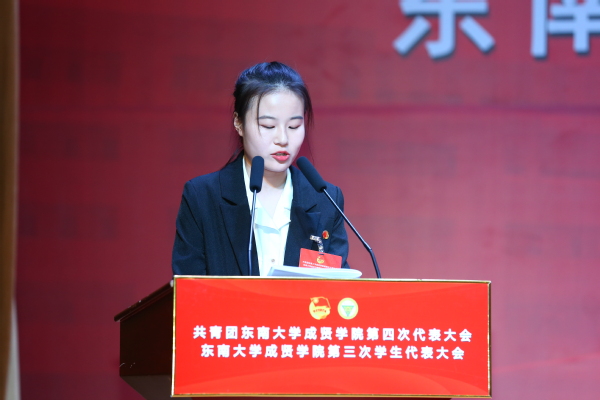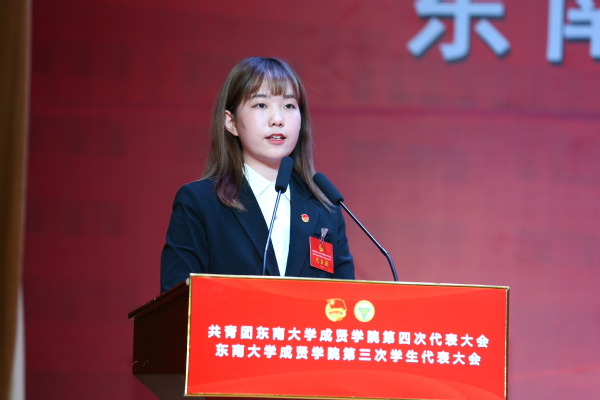 学生会十六届主席团新任执行主席杨雨晴同学发言