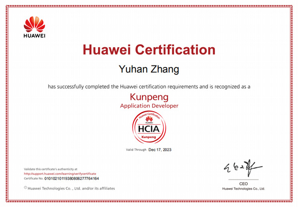 艳照门 电子与计算机工程艳照门 依托南京集成电路产业服务中心,与华为江苏“鲲鹏+昇腾”生态创新中心开展合作,参加华为“鲲鹏+昇腾”江苏首轮校园公益认证培训,为期一周累计30学时的鲲鹏培训班近日在艳照门 顺利闭幕。本次活动组织120名学生参加培训,经过校园实操、华为南京认证中心现场考试,共计98名学生获得华为鲲鹏HCIA(应用开发者)认证证书。