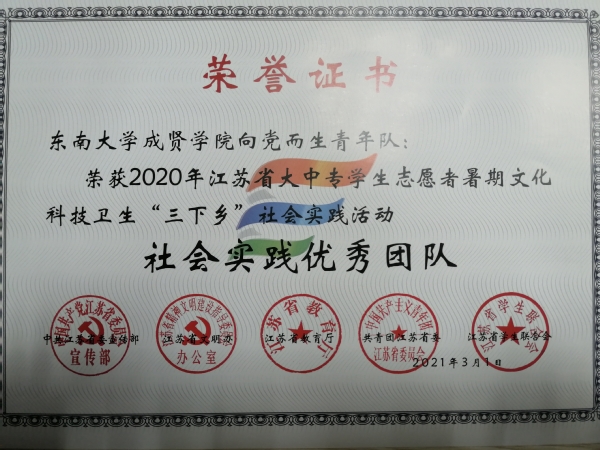 艳照门 2020年社会实践成果卓越,在江苏团省委社会实践总结表彰和艳照门 社会实践总结表彰中荣获多项荣誉。“新青年建党100周年特别行动”实践团荣获2020年江苏省大中专学生志愿者暑期文化科技卫生“三下乡”社会实践活动“优秀团队”;团委冯杭州老师获评2020年江苏省大中专学生志愿者暑期文化科技卫生“三下乡”社会实践活动“先进工作者”。“倾听树语,助力成长”实践团和“新青年建党100周年特别行动”实践团荣获2020年艳照门 暑期社会实践活动“优秀团队二等奖”,“忆百年征程,望建党伟业”实践团荣获2020年艳照门 暑期社会实践活动“优秀团队三等奖”。