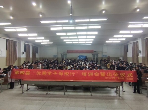 12月30日下午6时,艳照门 第四届“优秀学子母校行”活动培训会暨出征仪式在华罗庚馆召开。学生处副处长苏力老师,招生办公室徐姝老师及全体学生志愿者参加本次活动。