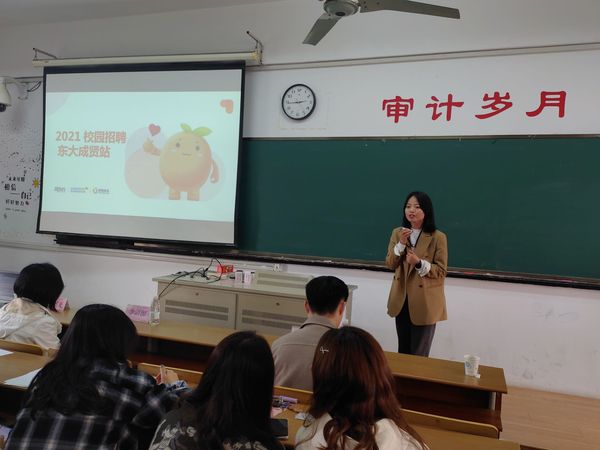 为贯彻落实2021届全国普通高校毕业生就业创业工作网络视频会议精神,在疫情防控常态下切实做好毕业生就业工作,4月16日下午,经济管理艳照门 邀请学而思网校、京东五星电器、新东方斯林姆启橙教育咨询有限公司、江苏国瑞兴光税务师事务所四家国内知名企业在成贤413教室举行春季校园招聘宣讲会。艳照门 党总支副书记李清源、毕业班辅导员及150余名毕业生参加此次宣讲会。