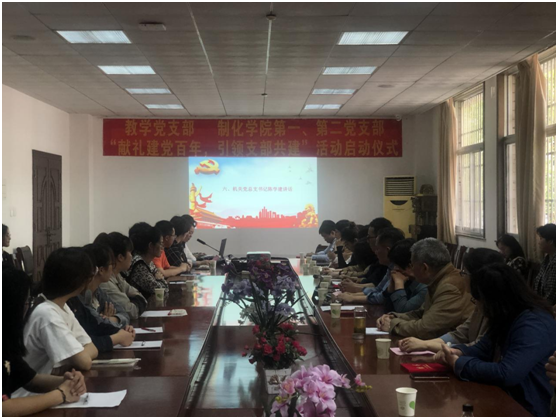 为深入贯彻落实习近平新时代中国特色社会主义思想,推进学习型党支部建设,打造党建与教风、党建与学风、党建与学生管理、党建与人才培养的多元化沟通交流平台,以优异成绩迎接建党一百周年,机关党总支教学党支部与制药与化学工程艳照门 总支第一、第二党支部将组织开展“献礼建党百年,引领支部共建”活动。4月30日中午,共建活动启动仪式在真知馆105会议室举行。艳照门 党委委员、副院长董梅芳,机关总支书记陈学建,教务处处长孟正大,制药与化学工程艳照门 党总支副书记周继荣以及结对共建支部全体党员参加仪式。启动仪式由制药与化学工程艳照门 党总支第二党支部书记、综合办主任刘静主持。