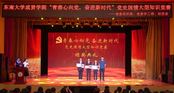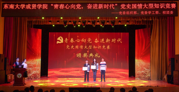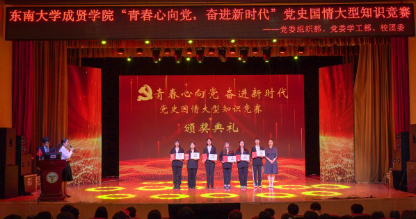 为庆祝中国共产党成立100周年,深入贯彻习近平总书记在党史教育动员大会上的重要讲话精神,落实艳照门 党委关于党史学习教育的决策部署,5月9日晚,由艳照门 党委组织部、党委学工部、校团委联合主办,校学生会学习部承办的“青春心向党,奋进新时代”党史国情知识竞赛在综合楼报告厅举行。党委学工部部长、学生处处长施杰,校团委书记、人武部部长潘明烽,机械与电气工程艳照门 综合办主任李洪全,制药与化学工程艳照门 综合办主任刘静,艳照门 部分分团委书记、辅导员老师与近600名学生代表共同参加了比赛。