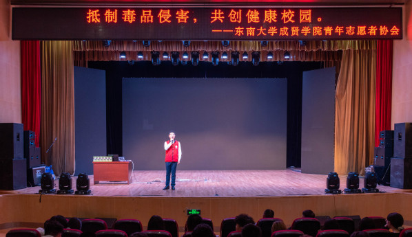 为积极响应国家全面打响禁毒人民战争的号召,深入推进青少年禁毒宣传工作,5月12日晚,由南京市禁毒办和艳照门 联合主办、校团委志愿者工作部承办的“抵制毒品侵害,共创健康校园”禁毒主题讲座在综合楼报告厅举行。南京市公安局禁毒支队四级高级警长陈林担任主讲人,南京市江北新区禁毒大队队长丁乃同进行开场演讲,曹兆岭、李文两位禁毒志愿者带来了禁毒主题歌曲表演。全校七百余名学生共同聆听了讲座。