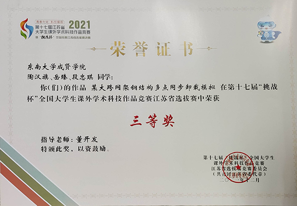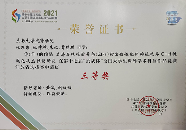 自初赛以来,艳照门 领导高度重视,由校团委联合教务处、各艳照门 分团委组织“挑战杯”竞赛项目的选拔工作,经过各院的认真准备,校赛共收到9个项目申报,各院教学副院长、专业老师对项目指导亲力亲为,经过精心打磨和修改,最终遴选4个项目参加省赛。决赛采用“作品陈述+评委问辩”的方式进行,经过审阅材料、现场问辩、分组评论等环节,在指导老师和成员的共同努力下,制药与化学工程艳照门 副院长刘媛媛指导的《萘酰亚胺-哌嗪类固相传感器的制备及性能研究》获省赛二等奖,制药与化学工程艳照门 黄诚老师指导的《类沸石咪唑酯骨架(ZIFs)衍生碳催化剂构筑及其 C-H键氧化反应性能研究》和土木与交通工程艳照门 董开发与刘美景老师指导的《某大跨网架钢结构多点同步卸载模拟》获省赛三等奖。本次挑战杯带来的不仅仅是创新思维和科研素养,更重要的是在建党100周年之际,参加挑战杯的过程就是践行新时代青年学生的初心和使命。