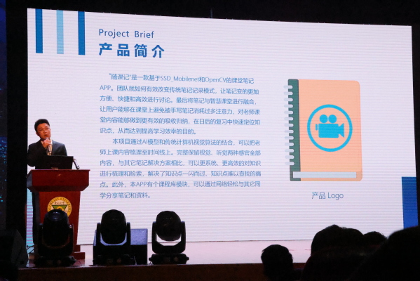 “大创”项目展示由3个项目组做了展示。易汇举同学为介绍了《智慧课堂笔记APP系统》,该省级项目结题验收优秀,已发表论文并申请软件著作权。赖志豪同学介绍了项目《奖项成果智能管理系统》,设计初衷是针对高校奖项成果资料的多样、档案整理繁杂的问题,便于评估、专业建设的成果资料统计,目前该系统已经在艳照门 运行,情况良好,得到了师生的好评。王靓同学介绍了《智能家居一体化》,该项目让宿舍窗帘更加智能化,已发表论文并获得实用新型专利证书。