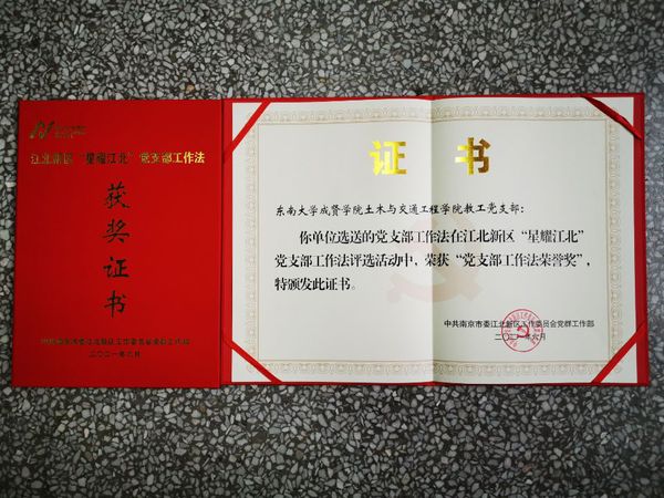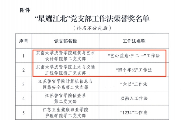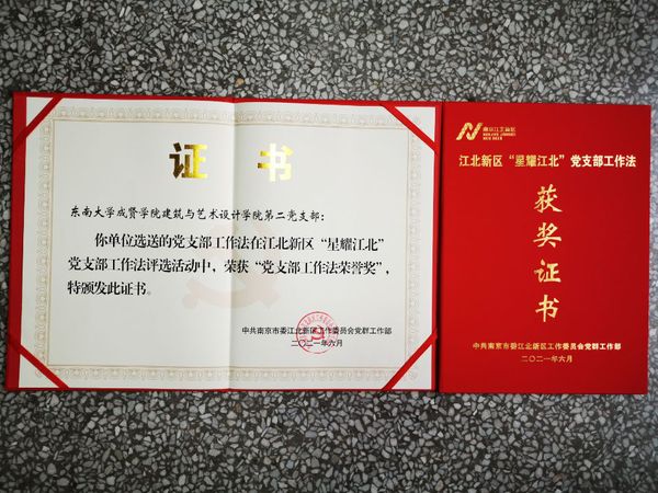 为深化党建强基系列行动,真正把党建基因融入江北新区发展血脉,进一步发挥基层党组织战斗堡垒作用和党员先锋模范作用,艳照门 推选的建筑与艺术设计艳照门 第二党支部“艺心益意·三二一”工作法和土木与交通工程艳照门 教工党支部“四个牢记”工作法在江北新区此次“星耀江北”党支部工作法评选活动中双双获奖。
