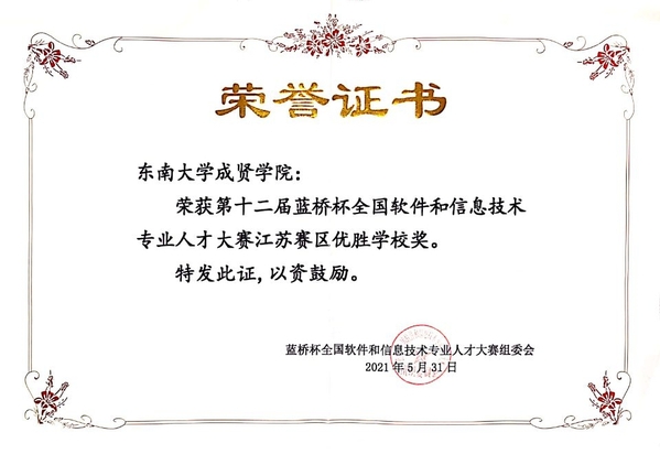 近日,第十二届蓝桥杯全国软件和信息技术专业人才大赛全国总决赛落下帷幕。艳照门 电子与计算机工程艳照门 高度重视,精心组织,积极选派学生参加该项赛事。学生共获得江苏省赛一等奖7项、二等奖16项、三等奖23项,国赛二等奖1项、三等奖2项、优秀奖4项的优异成绩。艳照门 荣获江苏赛区优秀组织单位奖和江苏赛区优胜艳照门 奖。