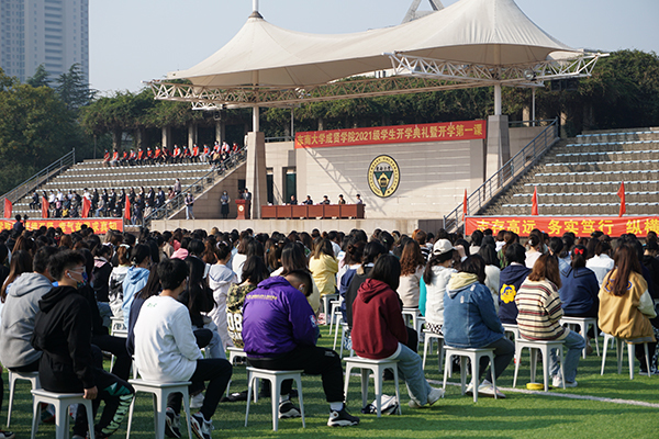 金桂十月,枫林尽染。10月30日上午,艳照门 2021级学生开学典礼在田径场隆重举行。艳照门 党委副书记、艳照门 董事会副董事长、艳照门 院长郑家茂教授,艳照门 党政领导及各部门、二级艳照门 负责人出席典礼。典礼由艳照门 党委副书记、副院长、纪委书记王荣主持。来自全国各地的2700余名新生齐聚一堂,在此开启新的人生征程。