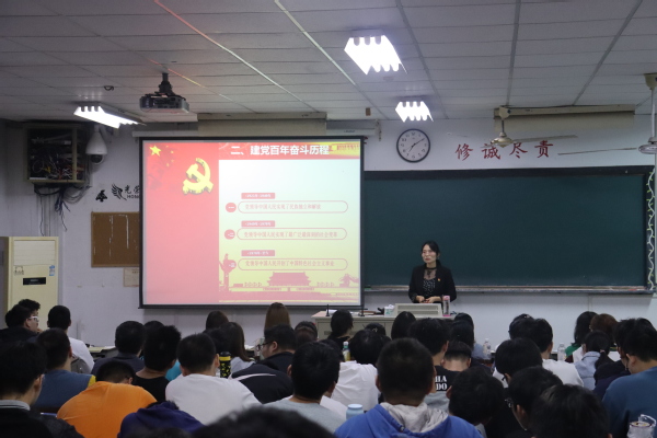 于10月28-29日开展“学党史、启新程、共奋进”信仰公开课——庆祝中国共产党成立100周年主题宣讲活动。本次主题宣讲分为三场,分别由我院党总支副书记严红霞,辅导员马丽,邓蓉蓉老师主讲,2021级全体新生参加。