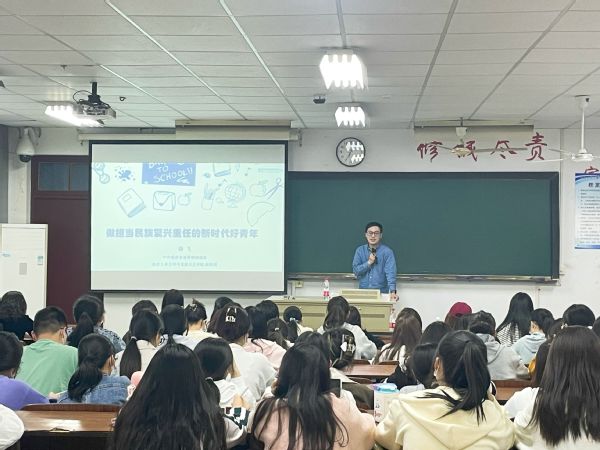 为引导青年学生深入学习贯彻党的二十大精神,5月12日,经济管理艳照门 邀请南京市党的二十大精神宣讲团成员、南京工业大学马克思主义艳照门 副教授、硕士生导师滕飞老师以“做担当民族复兴重任的新时代好青年”为题进行了一场生动的主题教育,经济管理艳照门 党总支副书记李清源和一百余名积极分子聆听了党课。