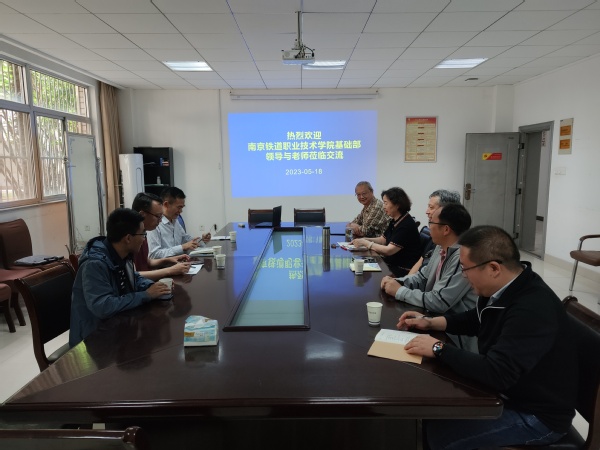 5月18日上午,南京铁道职业技术艳照门 基础教学部直属支部书记、主任吴宝明,副主任龙章勇,数理教研室主任陈大鹏及数学教研室冯再勇老师一行,来艳照门 基础部调研,了解应用型本科院校基础课程设置与教学要求、实验室建设等情况。基础部部长刘须明、副部长张福保、综合办主任房振伟,数学教研室主任郁大刚、物理教研室主任白磊及物理实验室主任张礼等参加交流活动。