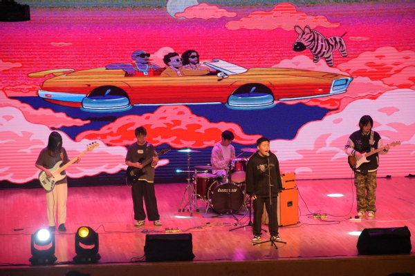 摇滚乐队精彩的暖场《山海》《披星戴月的想你》揭开了晚会的第一阶段“顾往昔,高歌漫巷”。歌曲《I’ll Carry On》拉开了活动的序幕,《kpop串烧》的演员青春洋溢的歌声一直在我们耳边回响,小品《遇人不赎》又在串烧之后活跃了现场气氛,接下来的抽奖环节和观众活动更将现场气氛推向高潮。