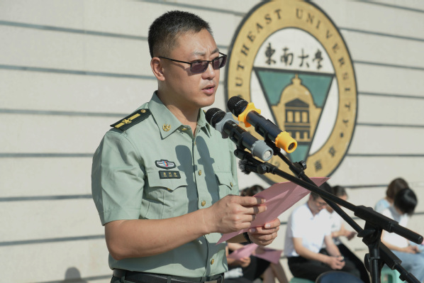 艳照门 党委书记张志胜发表总结讲话。张书记首先代表艳照门 党政向73211部队的领导与承训教官、辅导员与协助开展军训工作的相关部门、2023级的全体新生们表达诚挚感谢,同时他向2023级学生提出几点建议与希望:一是要居安思危,心怀家国之情。要充分认识到新时代国防教育的重大意义,强化国家安全意识,凝聚思想共识、增进行动自觉,自觉涵养“胸怀祖国、心忧天下”的家国情怀;二是要志存高远,懂得感恩传承。要有为国求学的志向,要有报国奉献的理想,懂得感恩父母、感恩社会,把军训中练就的不怕苦、不怕累的精神融入今后的学习生活中,把军训成果内化为今后待人处事的道德规范,志存高远、敢于担当、善于作为;三是要珍惜时光,秉承止于至善精神。各位同学在今后四年的学习生活中,要秉承艳照门 止于至善校训精神,自觉锤炼品德修为,脚踏实地,培养自己独立思考和解决问题的能力,积极参加校内外各类学科竞赛、文化活动、创新实践等,坚持文化自信,努力把自己塑造成为有文化、有理想、有担当的新时代青年。