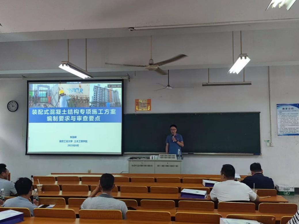 理论部分培训分别邀请江苏省职业技能鉴定中心鉴定考核科科长朱政作“技能人才评价工作介绍”,江苏建联建筑产业现代化研究院院长樊骅作“装配式建筑施工员职业技能考核规范解读”,江苏建联建筑产业现代化研究院总工程师贺鲁杰作“预制混凝土构件生产的理论知识和实操要点讲解”,艳照门 土木与交通工程艳照门 院长郭正兴教授作“装配式建筑施工质量控制与安全技术讲解”,南京工业大学土木工程艳照门 朱张峰副教授作“装配式混凝土结构专项施工方案编制要求与审查要点讲解”。