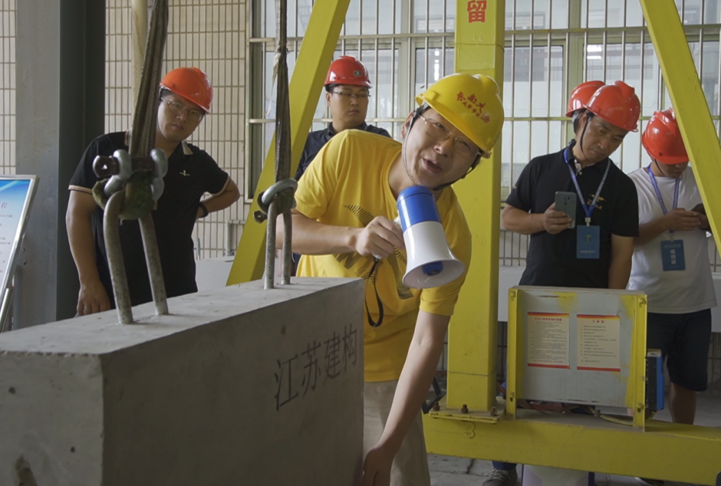 实操部分于土木与交通实验实训中心举行,艳照门 土木与交通工程艳照门 院长郭正兴教授对实验室多组合结构装配式模型进行了现场讲解,南京大地建设集团有限公司总工程师诸国政进行了预制剪力墙板吊装的实操演示,江苏华江建设集团有限公司实验室主任、“江苏工匠”、“扬州市五一劳动奖章”、“第二届全国装配式建筑职业技能竞赛预制构件套筒灌浆冠军”获得者潘正良进行了预制柱灌浆作业的实操演示。