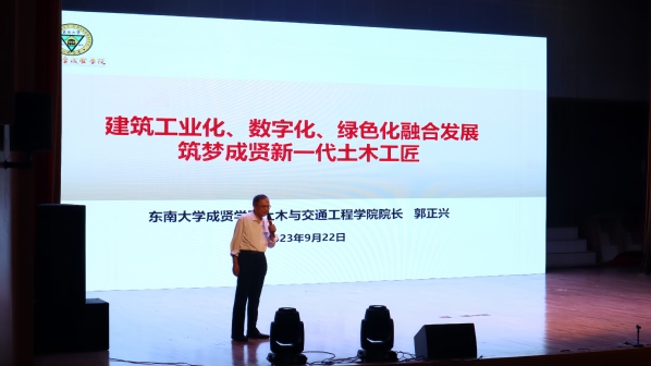 在第二篇章“勉悟精习”中通过聘任新生学生班导师指导、聘任新生班级班主任、聘任校友导师、聘任企业导师等环节集中阐述了土木与交通工程艳照门 在学生价值引领工作中的七大创新举措即精神引领、朋辈引领、专业引领、德育引领、社会引领、榜样引领和旗帜引领。在朋辈引领环节中,土木与交通工程艳照门 党总支书记杨阳为10名2023级新生学生班导师颁发聘书。在专业引领环节中,土木与交通工程艳照门 常务副院长郭应征为10名2023级新生班主任颁发聘书。随后,土木与交通工程艳照门 院长郭正兴为土木与交通工程艳照门 2023级新生带来了精彩的开学第一课教育。郭正兴院长从“工业化、信息化、绿色化”建筑行业三化融合发展的角度生动讲述了行业发展的新需求和新技术并以自身的实践与经历增强了同学们对未来土木行业发展的信心,希望同学们在未来能够掌握更多的技术与技能,成为多样化人才。