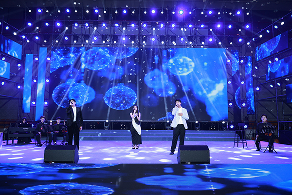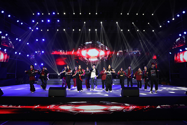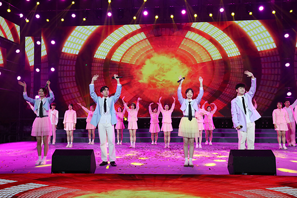 晚会分为15日、16日两场演出,在灯光秀和开场舞蹈《we rock》《yes ok》的欢快旋律中拉开帷幕。歌曲串烧《门》《永不失联的爱》《天黑黑》轻松愉悦;舞蹈《面纱》、说唱《麒麟》充满力量,潇洒利落;歌舞《逐梦》、合唱《有我》献给一代代不负时代重托的中国青年;民乐《象王行》展现气吞山河的磅礴景象;小品《反诈银行》诙谐幽默地讲述真实诈骗案例;舞蹈《只此青绿》以“青绿”彰显中华之美,用舞蹈绘就《千里江山图》;舞台剧《穿越时空的电台》跨越时空共享《歌唱祖国》诞生的幸福;音诗画《忆江南》将多种艺术形式融入《富春山居图》山水意境;民舞《唐宫夜宴》惟妙惟肖,带领观众穿越千年时光,共赴唐宫夜宴,晚会中时装秀、社团秀、退伍学生欢迎仪式以及招生视频、军训视频播放等环节形式丰富、内容精彩,现场不时响起雷鸣般的掌声与喝彩声。晚会最终在意气风发的歌舞《New Youth》里结束,在场领导、老师和演职人员合影留念,为本场活动画上了圆满的句号。