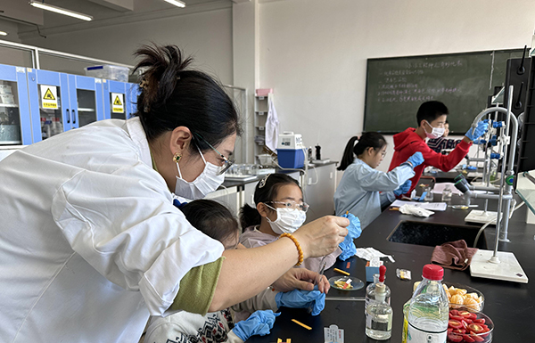 在制化艳照门 实验室,老师从身边常见的现象为切入点,带领“小工程师”们探索化学的奥秘。首先,老师演示了“黑面包”实验,大家通过观察、触摸,了解了浓硫酸脱水的原理;随后,老师带领孩子们进行了水果、饮料的酸碱度测定,大家认真比对PH试纸,记录实验数据,老师引导大家选择健康的饮料,爱护牙齿。