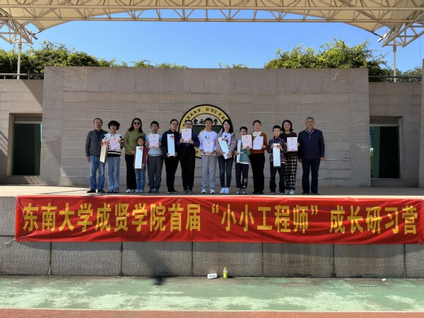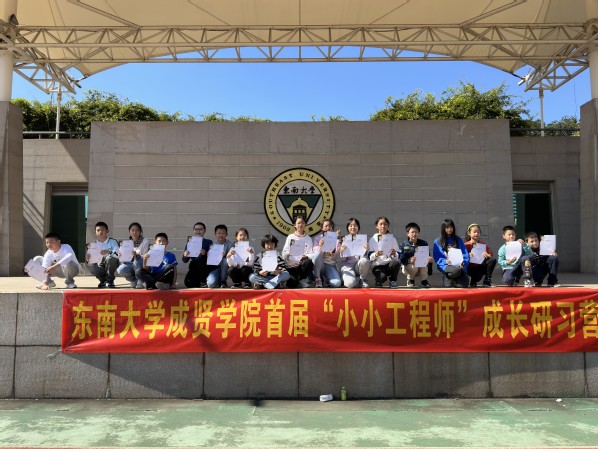 最后,参加研习成长营的“小小工程师”们在主席台合影留念,校工会主席唐小平为优秀学员颁奖。