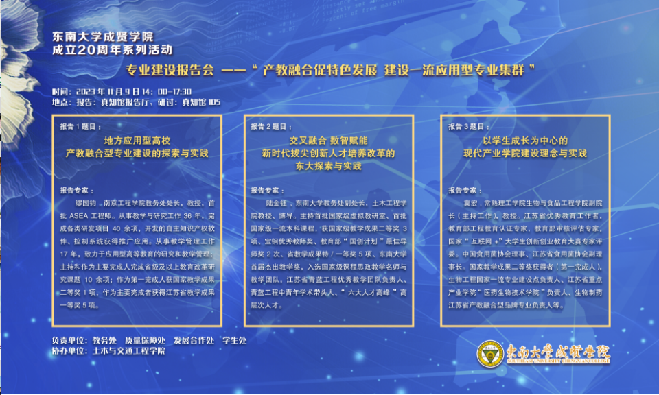 作为地方应用型高校进行产教融合型专业建设的探索与实践,及其在应用型本科人才培养中形成的鲜明特色。他强调,应用型本科人才的培养要坚持需求导向,注重校企协同、学做结合。陆金钰教授的报告“交叉融合,数智赋能—新时代拔尖创新人才培养改革的东大探索与实践”,从教育改革理念、人才培养实践以及专业典型案例等方面系统地介绍了如何重构知识体系,创新培养模式。最后,冀宏教授以“以学生成长为中心的现代产业艳照门