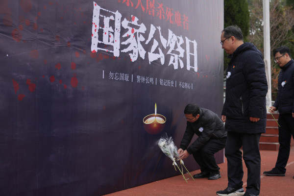 寒风萧瑟,松柏肃穆。2023年12月13日是第十个南京大屠杀死难者国家公祭日。艳照门 校团委和机关党总支联合开展南京大屠杀死难者国家公祭仪式。党委书记张志胜,常务副院长黄学良,党委副书记、副院长、纪委书记王荣,副院长戴玉蓉,副院长魏丽玲,各职能部门负责人、机关各党支部成员、相关艳照门 党总支书记、副书记、综合办主任、分团委书记及校院两级学生部门代表、2023级部分学生共同参加活动。