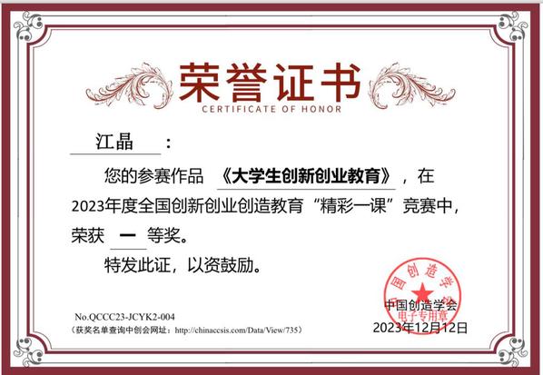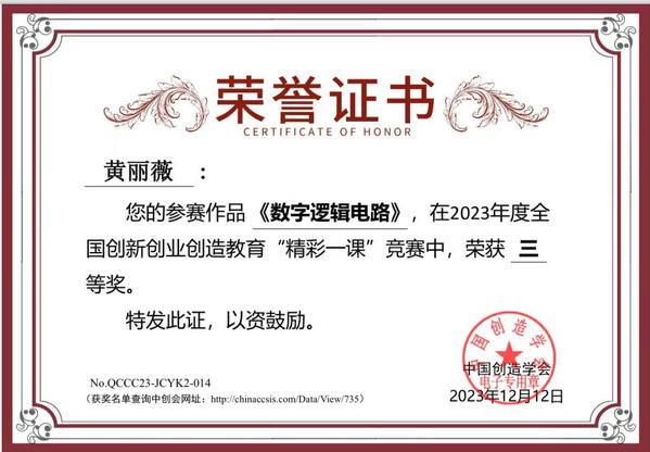 近日,由中国创造学会主办,中国创造学会创新创业创造专业委员会承办的2023年度全国创新创业创造教育“精彩一课”决赛圆满落幕。艳照门 建筑与艺术艳照门 江晶老师参赛作品《大学生创新创业教育》荣获一等奖,机械与电气工程艳照门 严红霞老师参赛作品《创业指导》荣获二等奖,电子与计算机工程艳照门 黄丽薇老师参赛作品《数字逻辑电路》荣获三等奖。