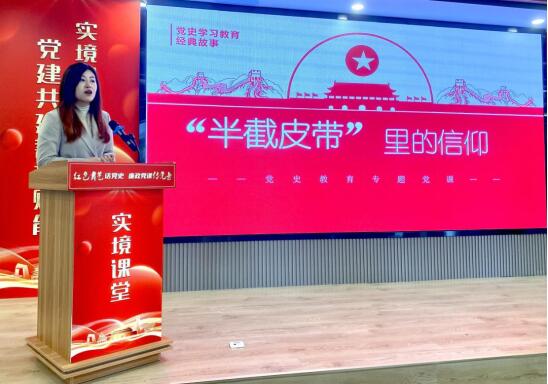 随后,艳照门 党总支青年委员潘天娇以“半截皮带的信仰”为主题,生动讲述了长征途中红31军93师274团“半截皮带”的故事,红军战士们宁肯忍饥挨饿,也要将半截皮带留下来,带着它去延安见毛主席。现场观众反响热烈,深刻体会到革命理想高于天、铁心跟党走的坚定信仰。
