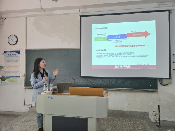 为了更好地服务艳照门 学生海外提升学历、增强就业实力,搭建出国(境)留学平台,4月24日,发展合作处邀请南京市外事服务有限公司出国留学部资深留学专家程闽在艳照门 金坛院教室开展“海外升学面对面”宣讲活动。来自6个艳照门 各年级近40名有出国意愿及出国、考研两手抓的学生参加了宣讲会。
