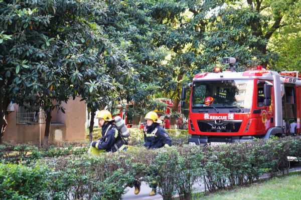 在模拟“火情”的警报鸣响后,工作人员第一时间赶赴现场,引导学生有序疏散至室外平台区域。同时,消防车到达现场,消防员在艳照门 工作人员的协助下完成楼内人员搜索及清点等工作,最终全部人员安全疏散,整场活动井然有序。本次演练在引导疏散的基础上还增加了“固守待援”技能训练,模拟了在突发情况下室内人员无法逃生等待救援的情况,锻炼了相关人员的应急处置和避险能力。