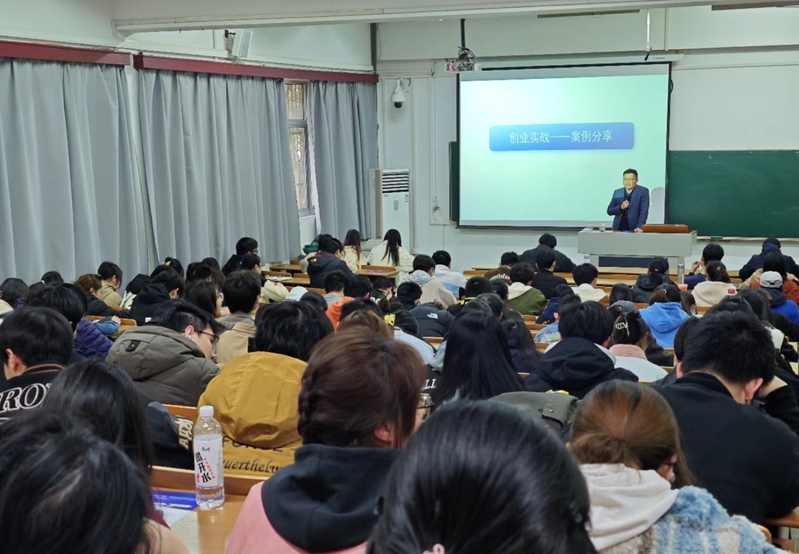 创新创业大课堂讲座邀请了小石头文化联合创始人及CEO、“南京市百名优秀文化人才”、“全民阅读推广人”蒋召干老师担任主讲。讲座伊始,蒋召干老师从他自身的创业经历—“小石头文化”和创业案例出发,用宗庆后成功的故事,与大家一同分享了宝贵的创业经验和心得,激励青年学生们敢于创新、勇于实践。随后,蒋老师进行了现场答疑,解答同学们在创业中遇到的困难和问题。