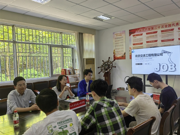 5月15日上午,由校友会牵头,土木与交通工程艳照门 在物理实验楼124会议室举办南京交通工程有限公司专场招聘会。学生处处长助理、校友会办公室主任颜秉明,土木与交通工程艳照门 院长助理、综合办主任石城,毕业班辅导员陆凡华、张玲热情接待用人单位的领导,2020级毕业班同学参加了此次招聘会。