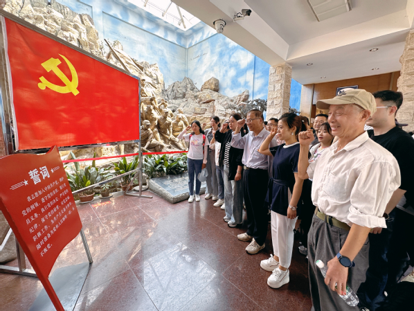 参观结束后,党员同志在土木与交通工程艳照门 院长郭正兴教授的带领下在现场举行了庄严的重温入党誓词宣誓仪式。面对鲜红的中国共产党党旗,大家举起右拳,庄严宣誓,铮铮誓言铿锵有力,久久回荡。