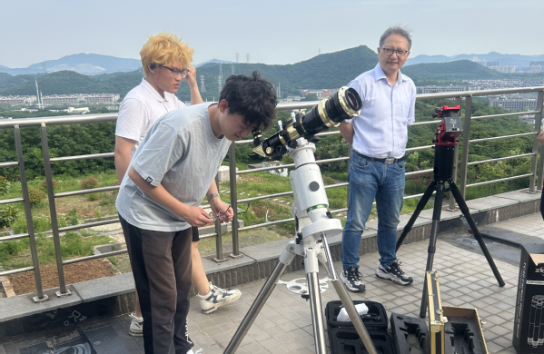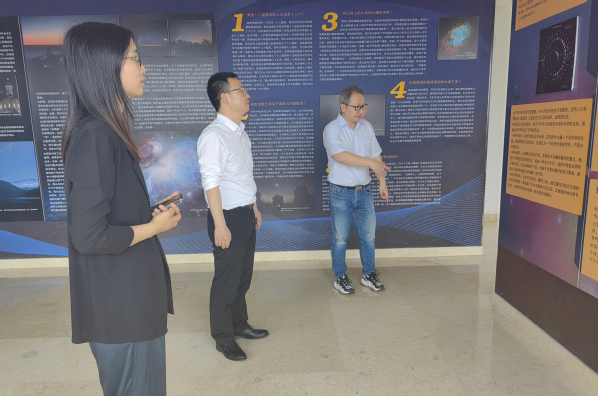 会后,在彭志欣秘书长的带领下,艳照门 师生代表参观了南京大学左涤江天文台。首先进入一楼展厅,彭志欣秘书长科普了地球自转公转带来了月亮的阴晴圆缺、日偏食的形成、彗星产生的彗尾以及流星的形成原理、户猎座大星云、超新星的爆发、黑洞的秘密等天文知识。接着,一行人来到天文台广场,近距离接触天文望远镜,体验搭建望远镜并观察太阳日珥的活动,感受天文学科魅力的同时,也体会到南大人“仰望星空,脚踏实地”的天文情怀。
