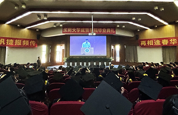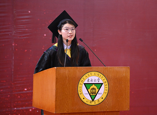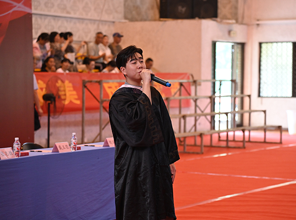 风景园林1班的汪弘磊同学代表全体毕业生向艳照门 、向老师与家长表达了最衷心的感谢和最崇高的敬意。她勉励大家坚定信念,坚持不懈,不断学习和自我提升,为国家的繁荣、社会的发展贡献青春力量。