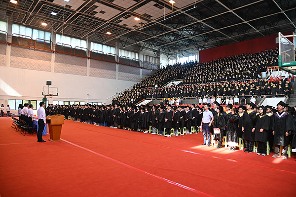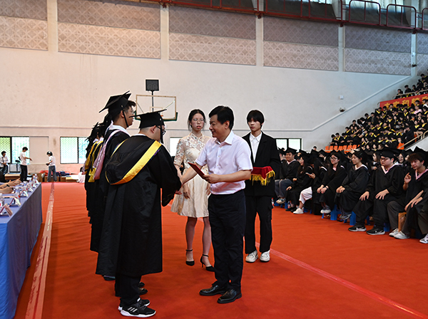 在雄壮的国歌声中,毕业典礼暨学位授予仪式拉开序幕。艳照门 常务副院长黄学良首先致辞,他代表艳照门 理事会、艳照门 党政,对毕业生们致以衷心祝福和热烈祝贺,向付出辛勤劳动的教职员工,始终关注着同学们成长的亲友、社会各界人士以及一直以来给予艳照门 巨大帮助和支持的艳照门 领导表示衷心的感谢,并致以崇高敬意和美好祝福!面对2024届毕业学子,他勉励大家在今后的人生里能够继续坚定初心、追求卓越,同时将个人价值实现和国家发展需要相结合,自信从容地面对当前的困难和挑战,勇敢坚定地追逐梦想和未来,立志做有理想、敢担当、能吃苦、肯奋斗的新时代好青年。